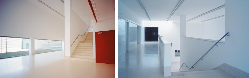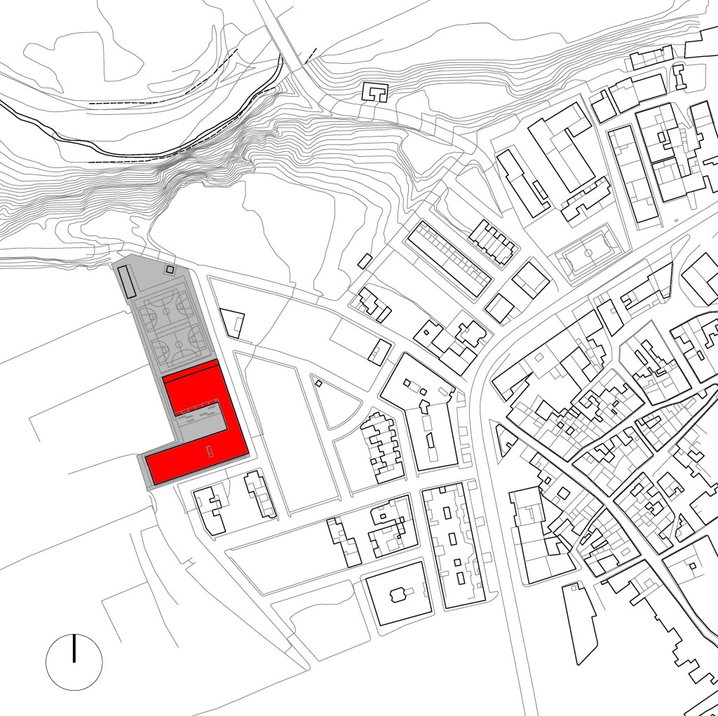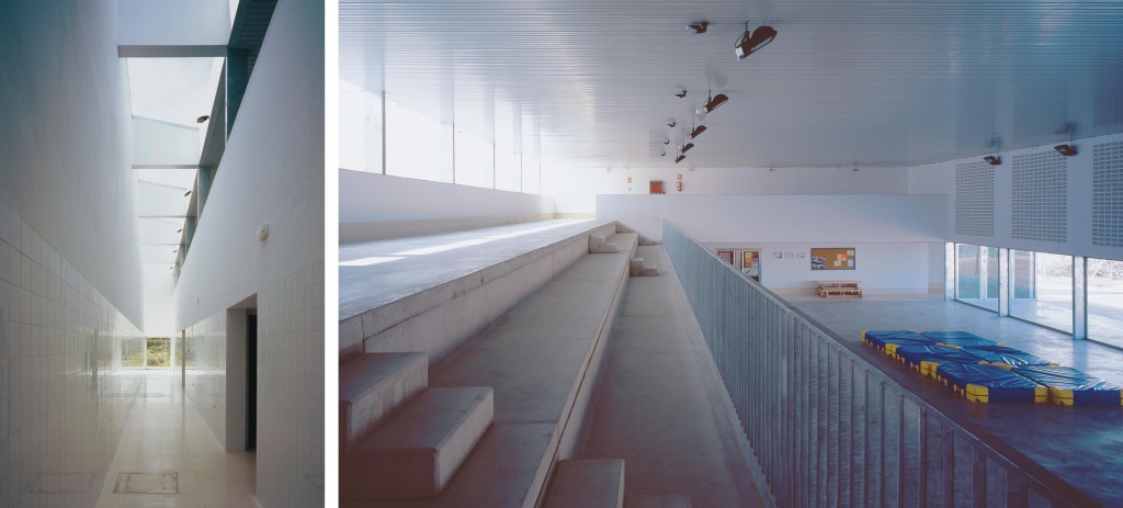 El ala sur aloja biblioteca, administración, aulas y seminarios. El vestíbulo, de doble altura, articula los elementos principales del programa y se dispone como mirador hacia el patio. El gimnasio se sitúa al norte, como ampliación cubierta de las instalaciones deportivas preexistentes. Al oeste se emplazan en planta baja cafetería, almacén general y cuartos de instalaciones, y en planta primera los despachos.